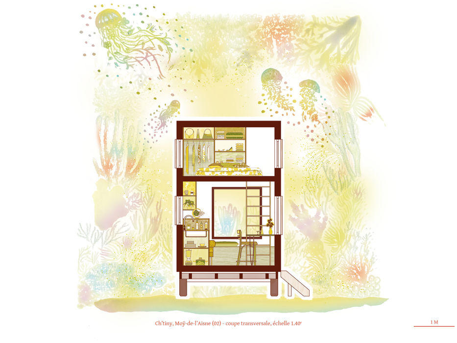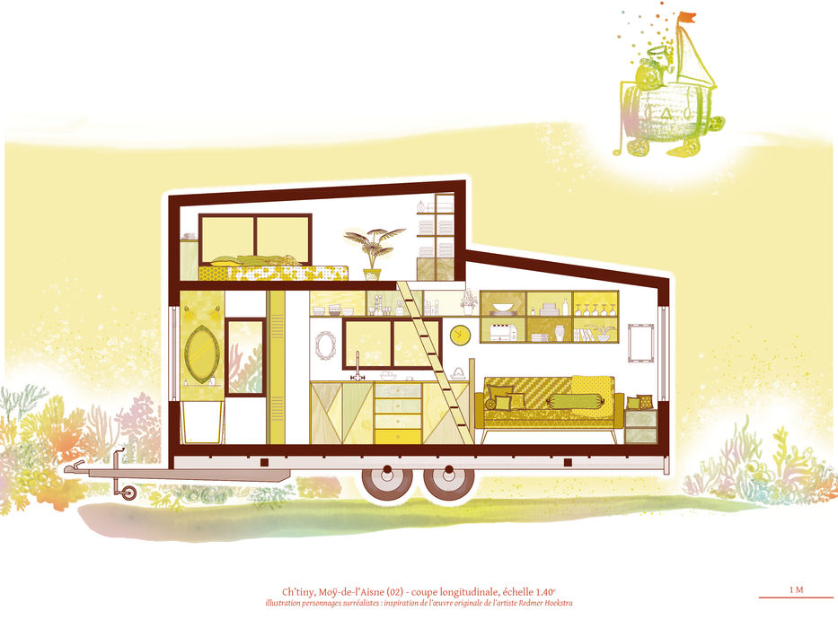 La ch’tiny est une tiny house sur remorque de Nathalie, qui vit dans l’Aine et qui désirait pouvoir être autonome et mobile à la retraite.